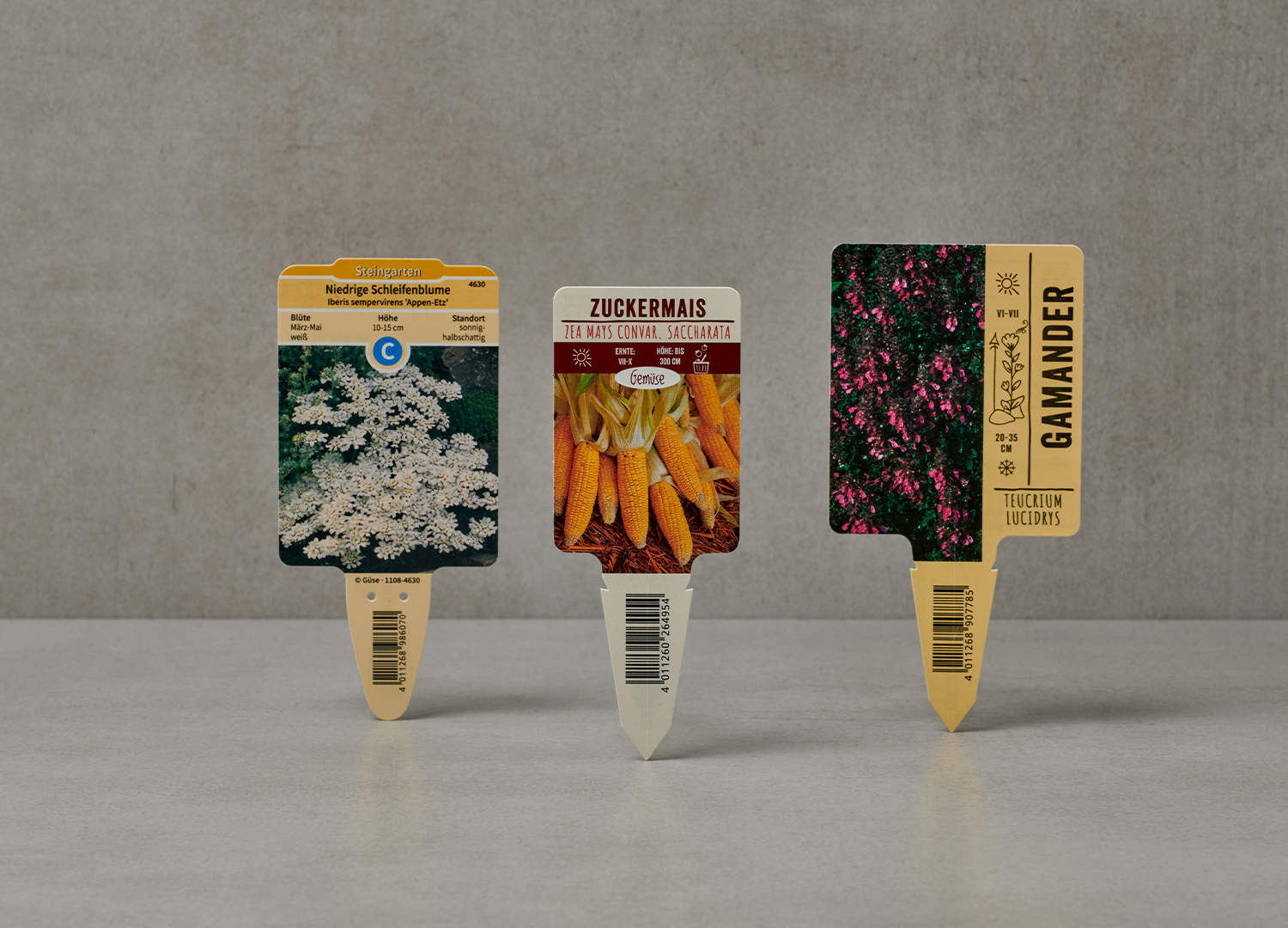 Robuste Etiketten mit einer bestimmten Form wurden dafür entwickelt, Informationen über Pflanzen, die richtige Pflege oder ein Absenderlogo direkt im Pflanztopf zu platzieren. Sie werden von uns wetterfest, lichtstabil und farbecht produziert.