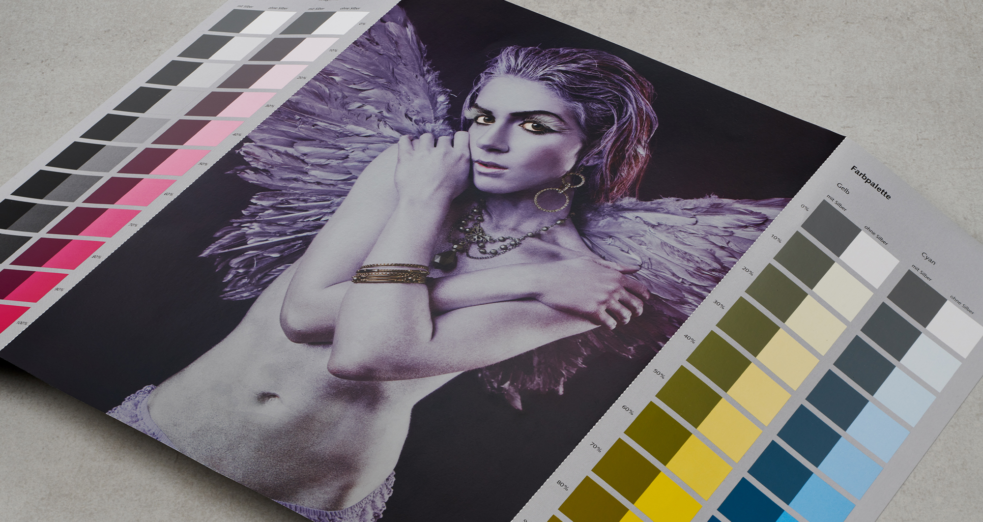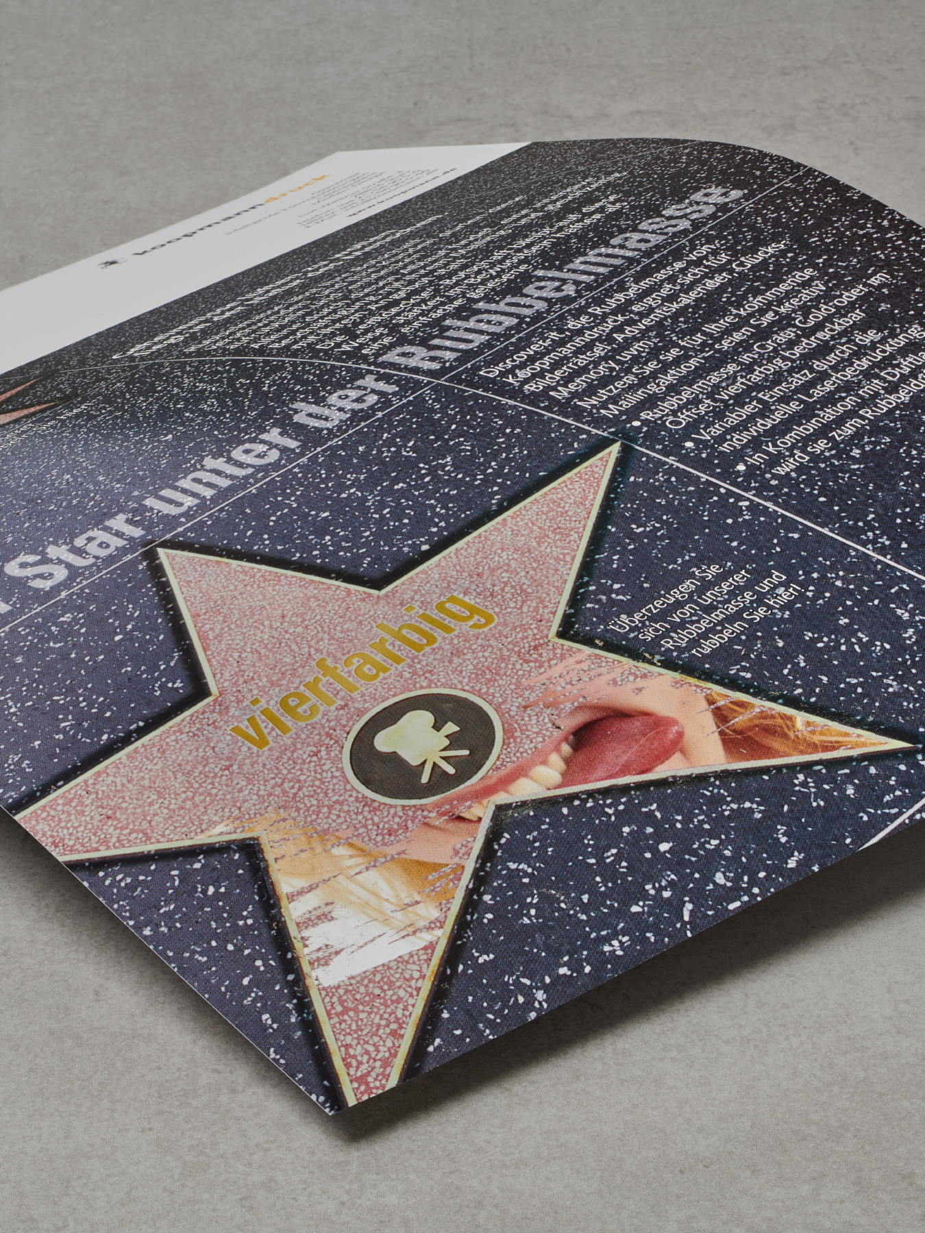 Um die Wirkung von Farben zu intensivieren, haben wir die Möglichkeit, weitere visuelle Effekte und Oberflächenstrukturen hinzuzuaddieren. Aus dem Druckprodukt kann so ein visuelles und haptisches Erlebnis werden, das Aufmerksamkeit schafft.